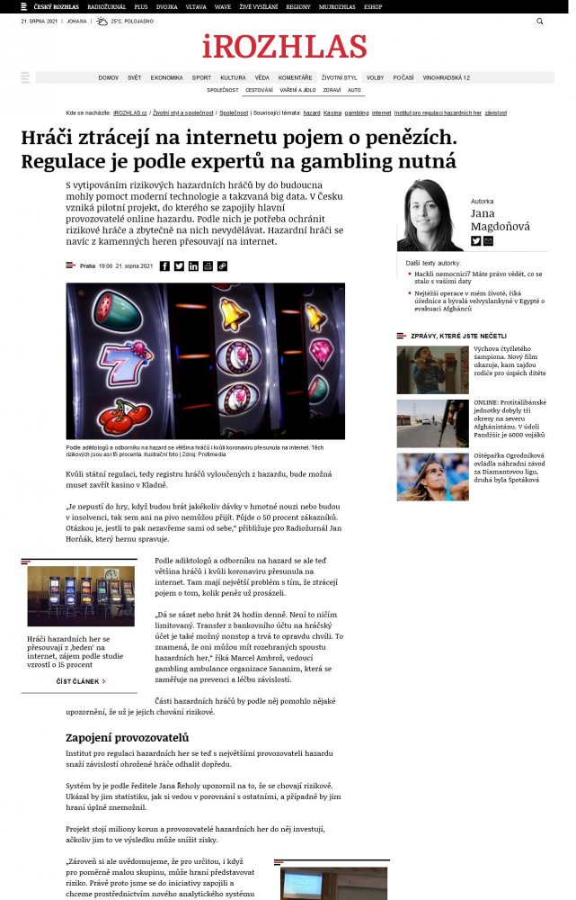 S vytipováním rizikových hazardních hráčů by do budoucna mohly pomoct moderní technologie a takzvaná big data. V Česku vzniká pilotní projekt, do kterého se zapojily hlavní provozovatelé on-line hazardu. Podle nich je potřeba ochránit rizikové hráče a zbytečně na nich nevydělávat. Hazardní hráči se navíc z kamenných heren přesouvají na internet.